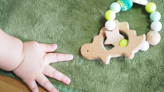 ぐずり防止対策の1つ目は、赤ちゃんが初めて見る、新しいおもちゃを用意しておくことです。