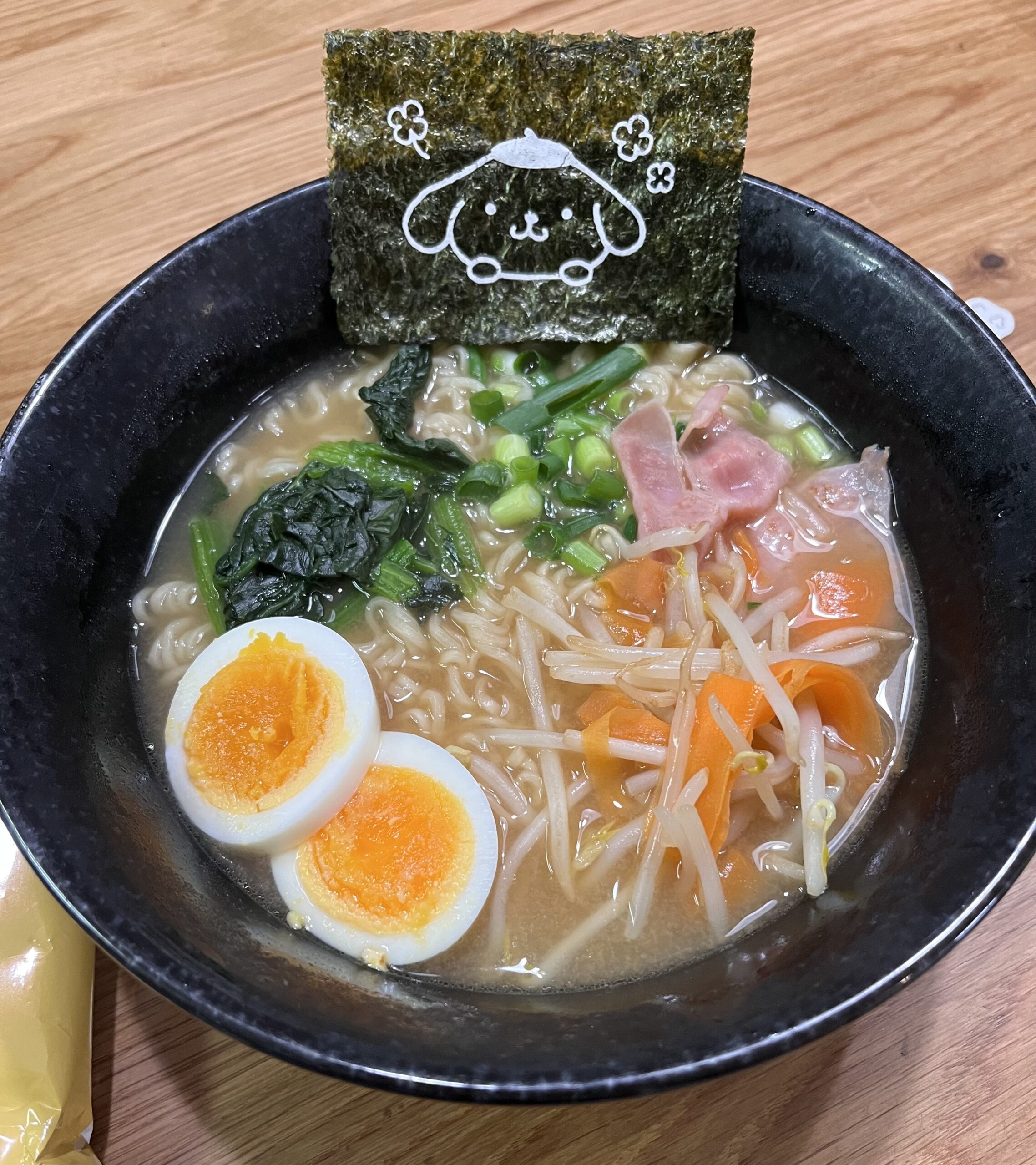 さてさて、そんな可愛いポムポムプリンのラーメンですが、実食していきたいと思います。