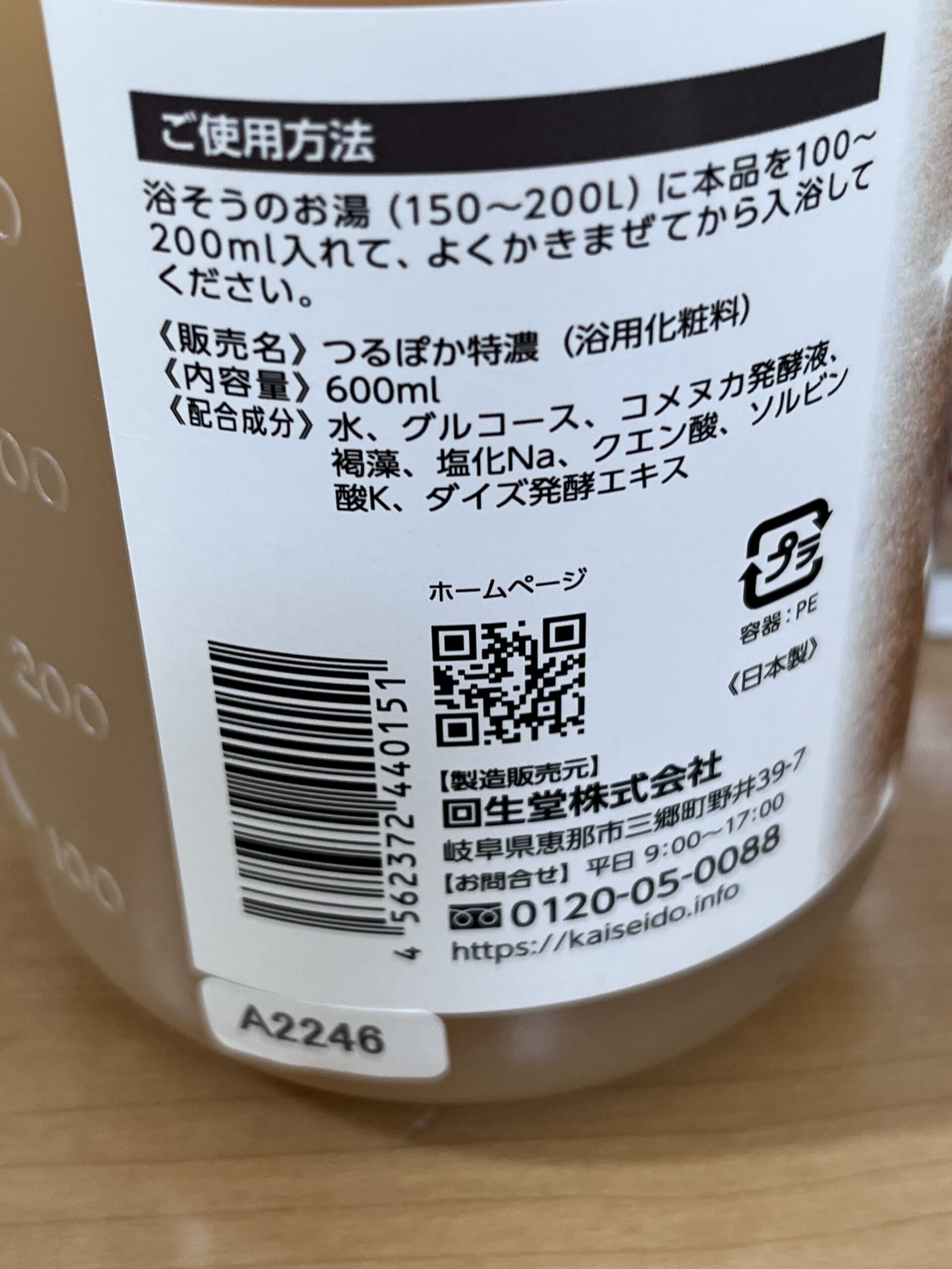 「つるぽか 特濃 うるおい入浴液」(浴用化粧料)です。