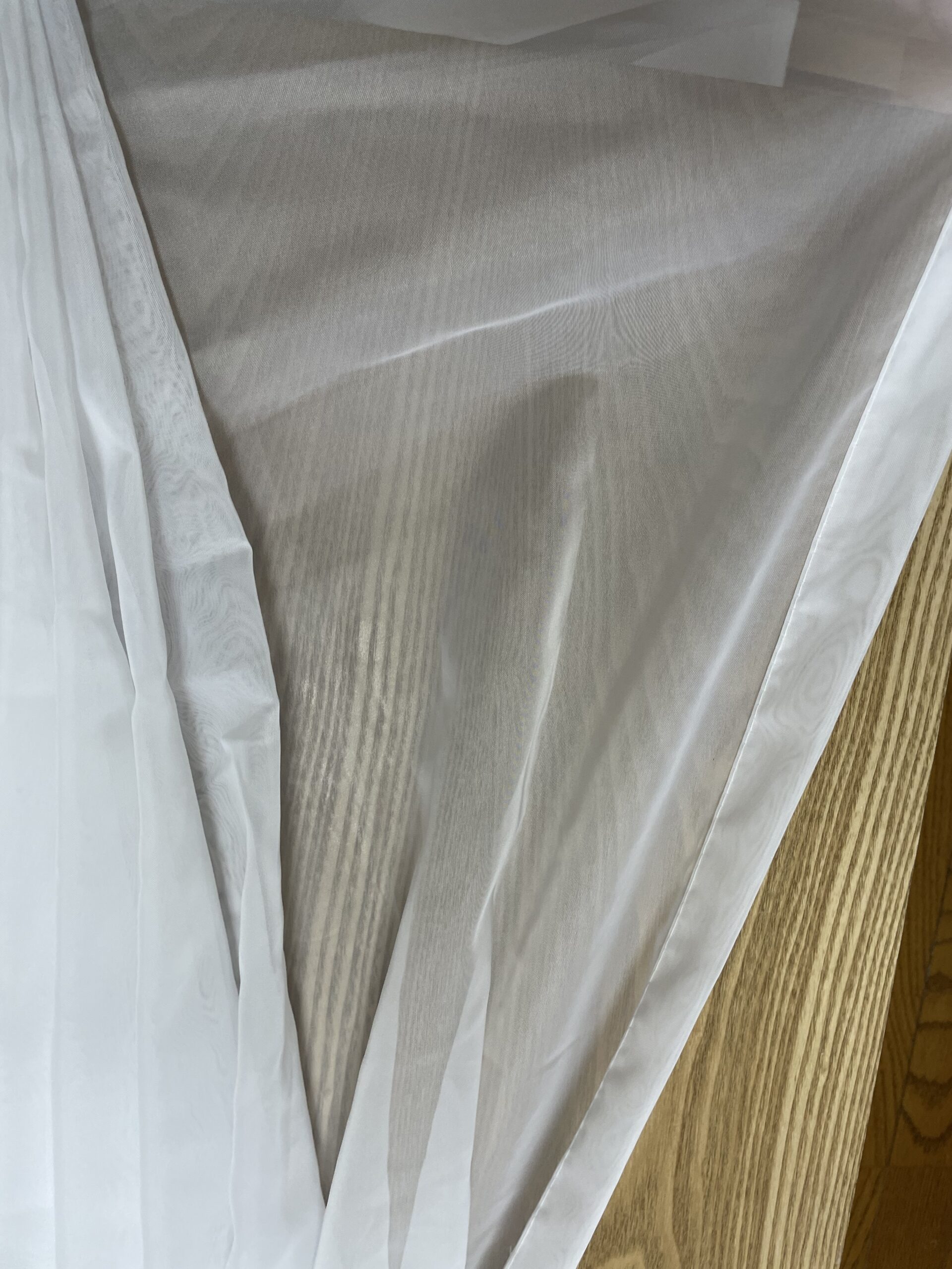 カーテンの布がとてもなめらかで、流れるような美しさがありますね。