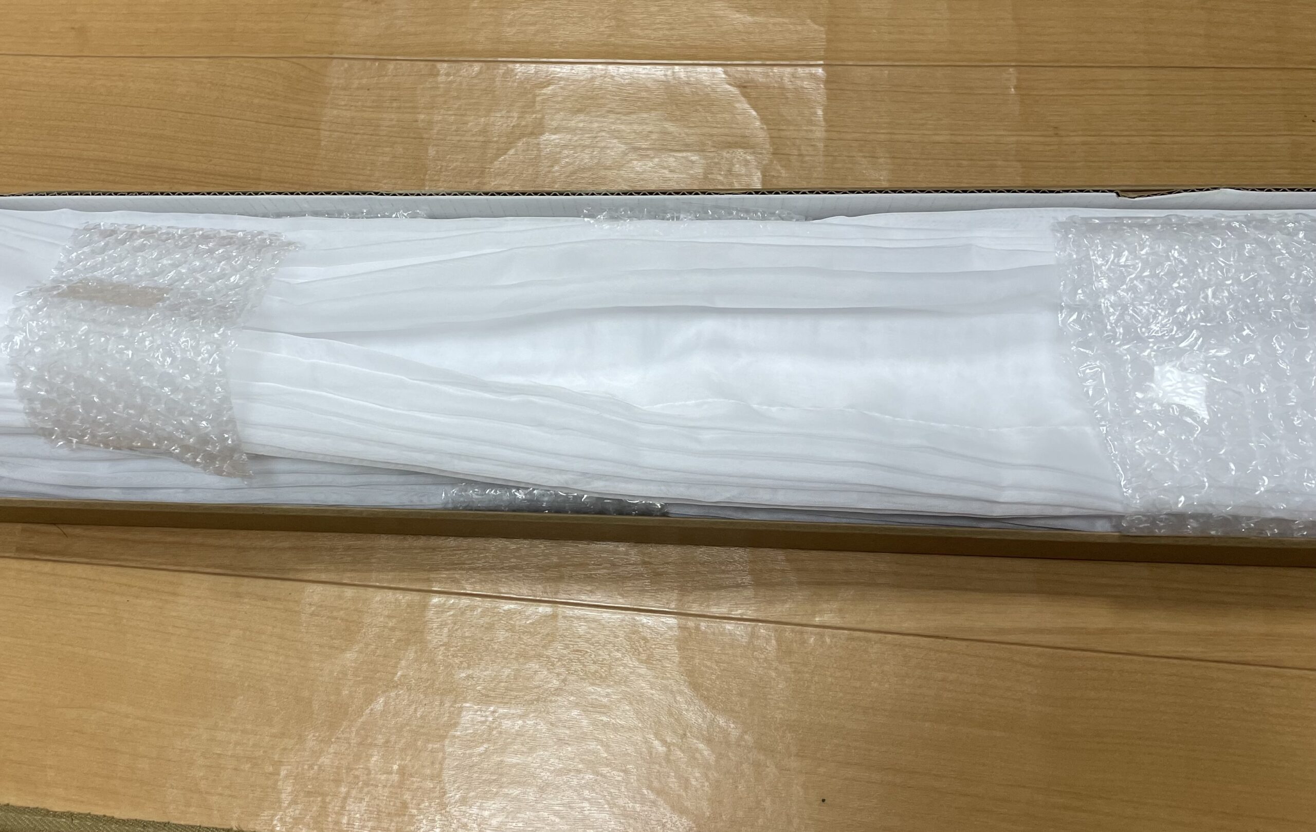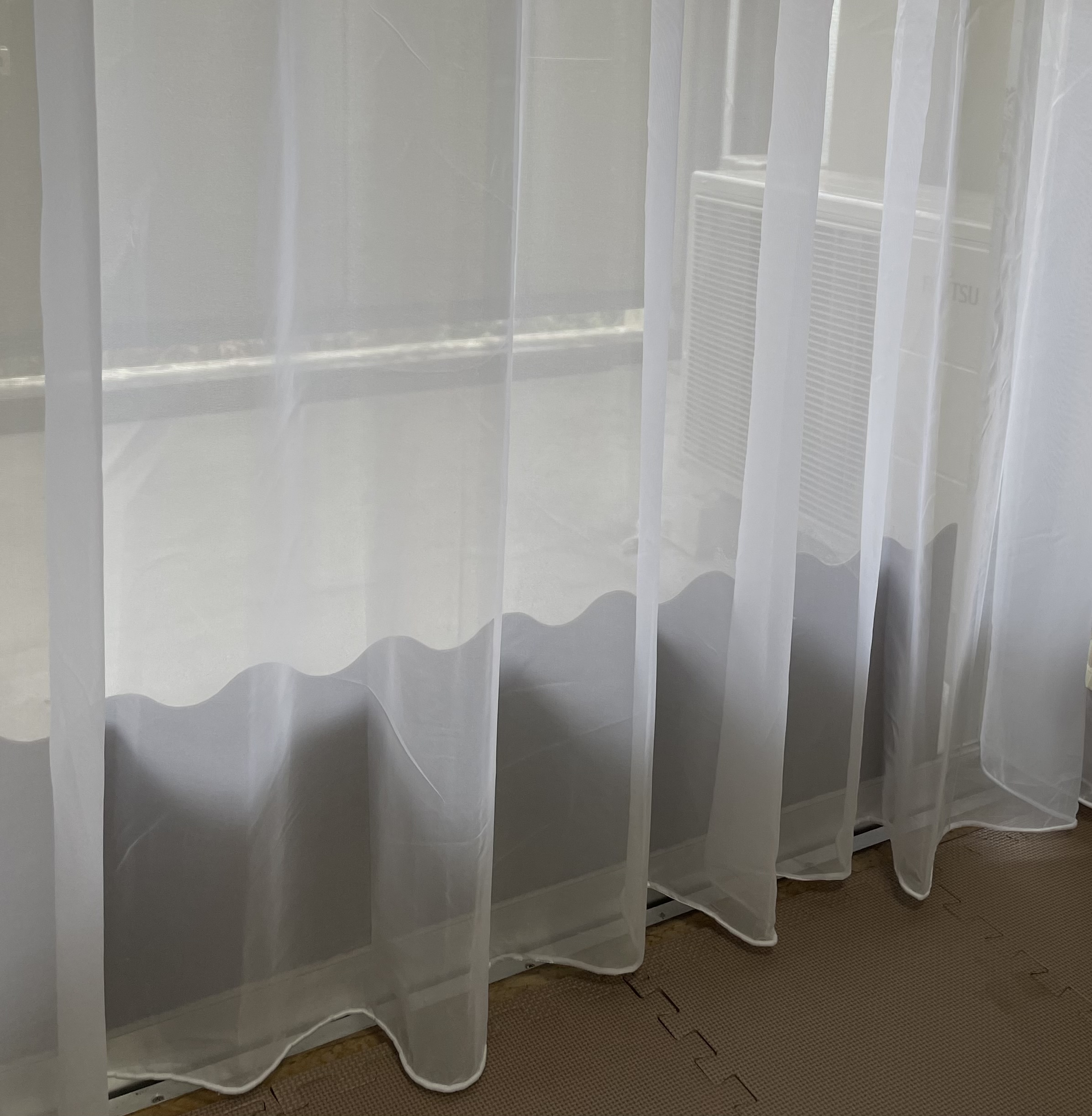 カーテン自体の白も明るく、外からの光もほどよく取り入れてくれるのでお部屋がパァーっと明るい印象になりました♪